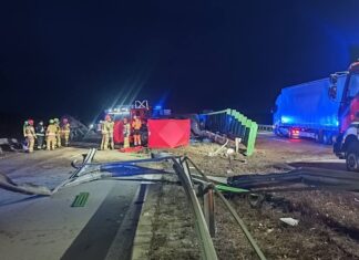 Ze wstępnych ustaleń wynika, że kierujący pojazdem ciężarowym zjechał na lewy pas ruchu, a następnie przebił bariery rozdzielające jezdnie i zderzył się z prawidłowo jadącym samochodem osobowym.