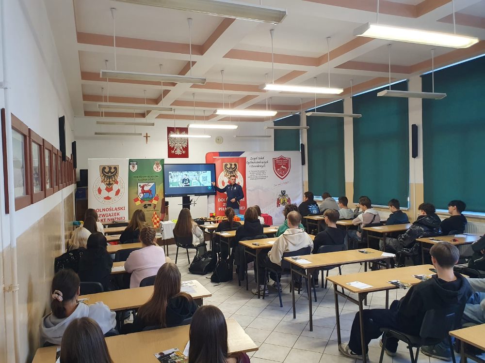 Spotkania z młodzieżą w szkołach to jeden ze sposobów działaczy z Kolegium Sędziów w Jeleniej Górze, by zachęcić młodych ludzi do przygody z piłką nożną.