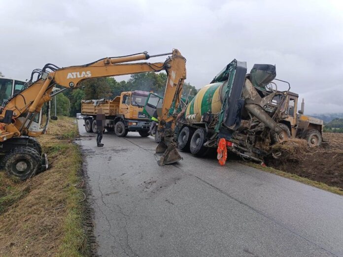 Kilkanaście minut przed godziną 13. Na drodze w okolicy Rębiszowa do rowu wpadła ciężarówka – betoniarka. Na szczęście w zdarzeniu nikt nie odniósł obrażeń.