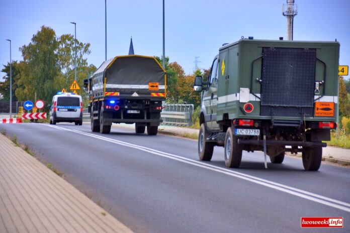Sporych rozmiarów bomba lotnicza, pozostałość po działaniach wojennych, została odnaleziona przez spacerującego w lesie mężczyznę. Na miejscu policja i patrol saperski.