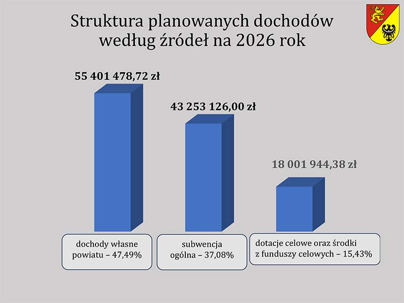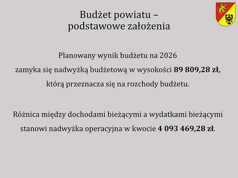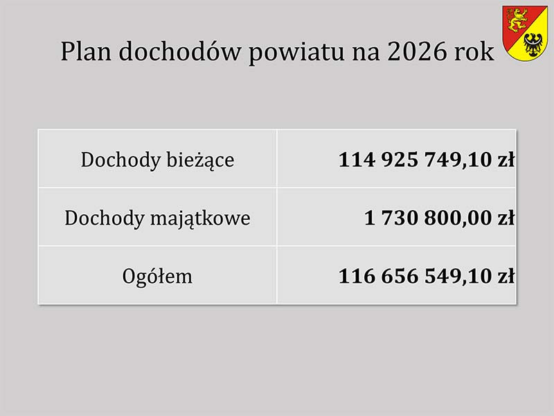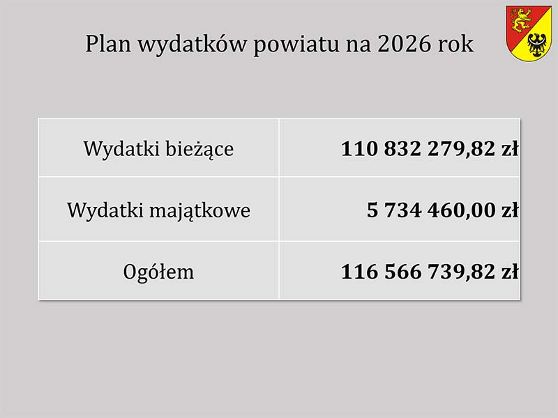 Projekt budżetu opiera się na dochodach i wydatkach przekraczających 116 milionów złotych. Konstrukcja finansowa na 2026 rok zakłada zachowanie równowagi, a nawet niewielką nadwyżkę budżetową, co w obecnych realiach finansów samorządowych nie jest standardem. Kluczowe znaczenie ma także dodatnia nadwyżka operacyjna, będąca jednym z podstawowych wskaźników stabilności finansowej Powiatu i jego zdolności do realizacji przyszłych przedsięwzięć.