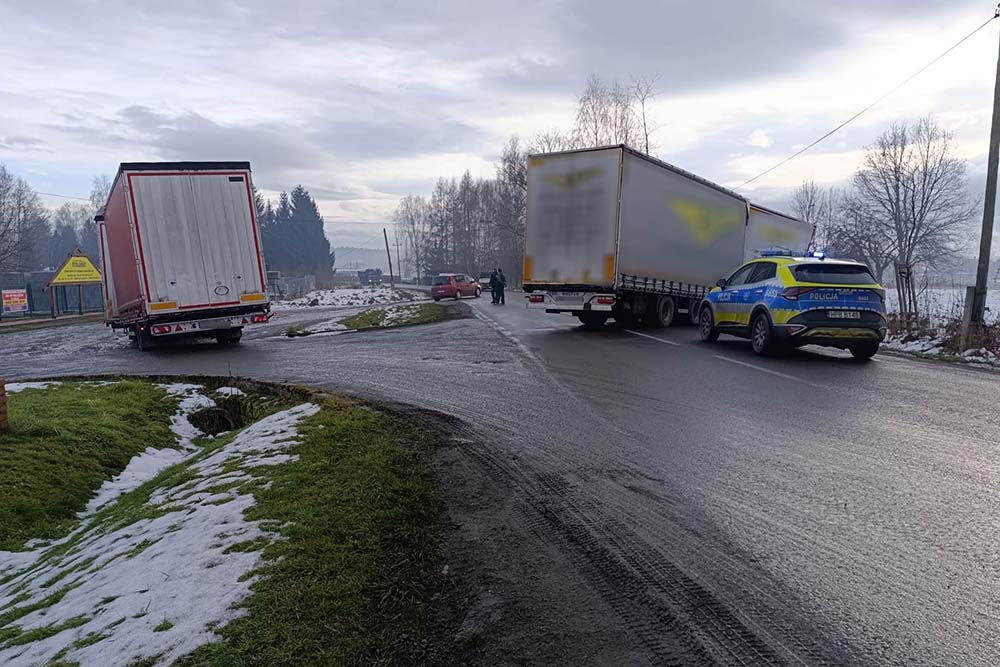 Na miejsce udał się patrol z Komisariatu w Gryfowie Śląskim. Z wstępnych informacji wynika, iż kierowca najprawdopodobniej nie wyrobił zakrętu wyjeżdżając z pobliskiej firmy. W wyniku kolizji nikomu nic się nie stało.