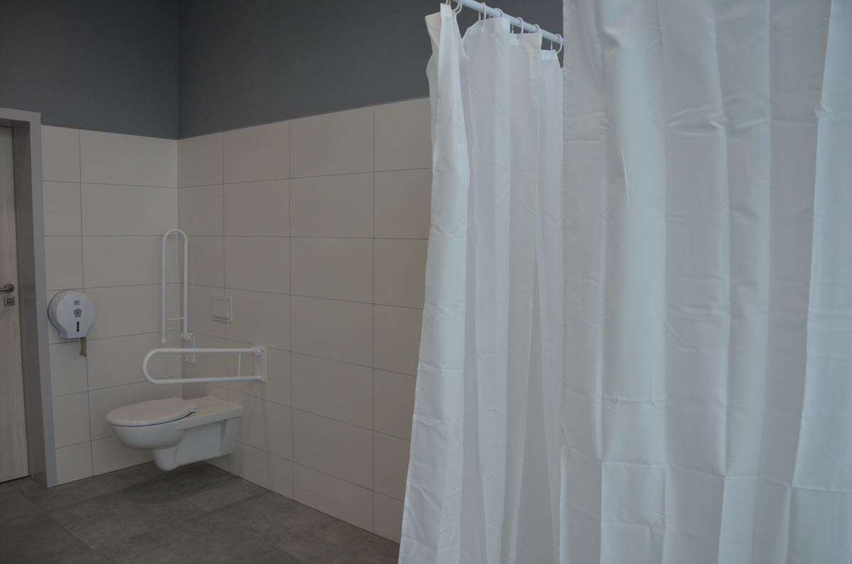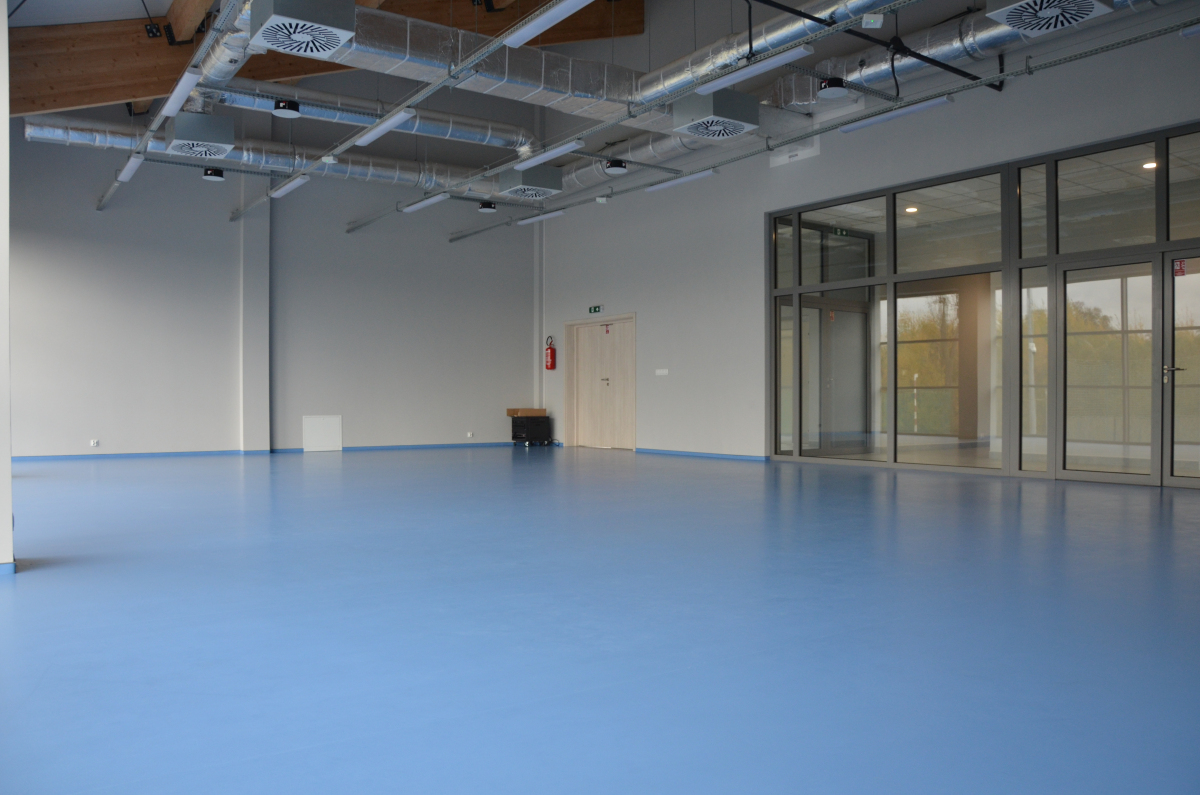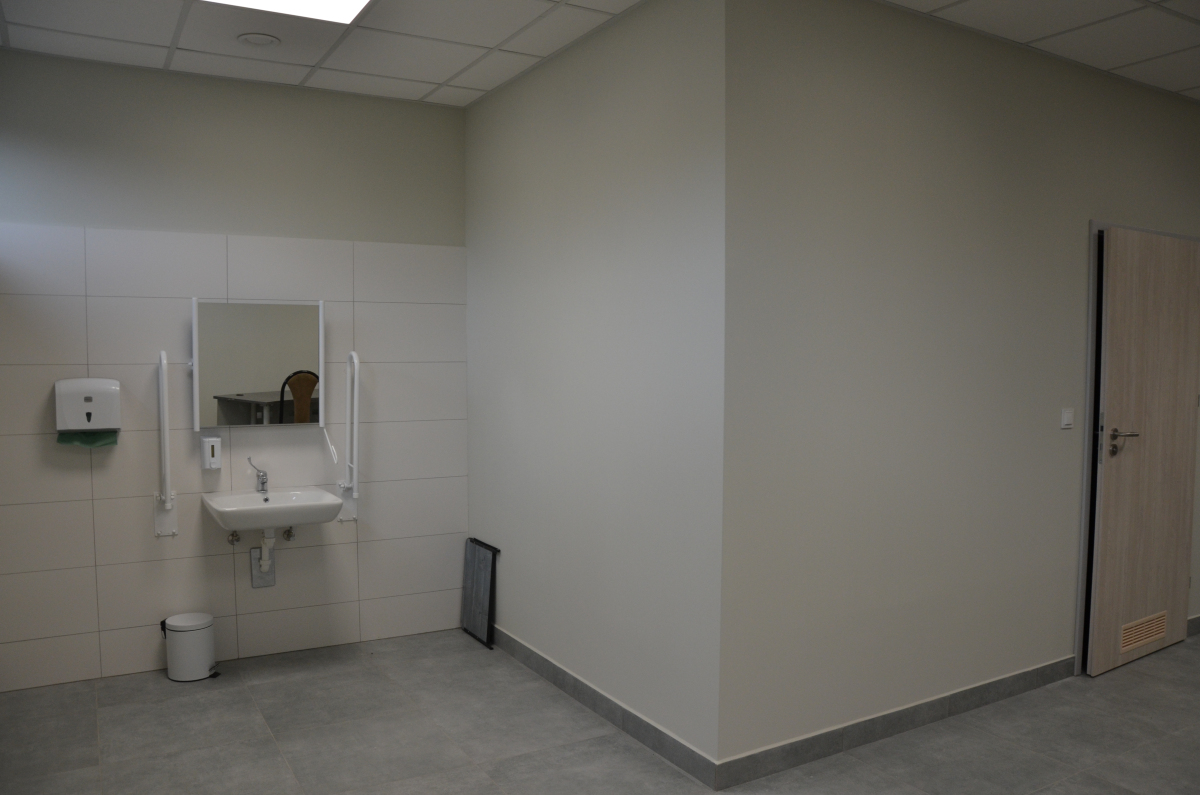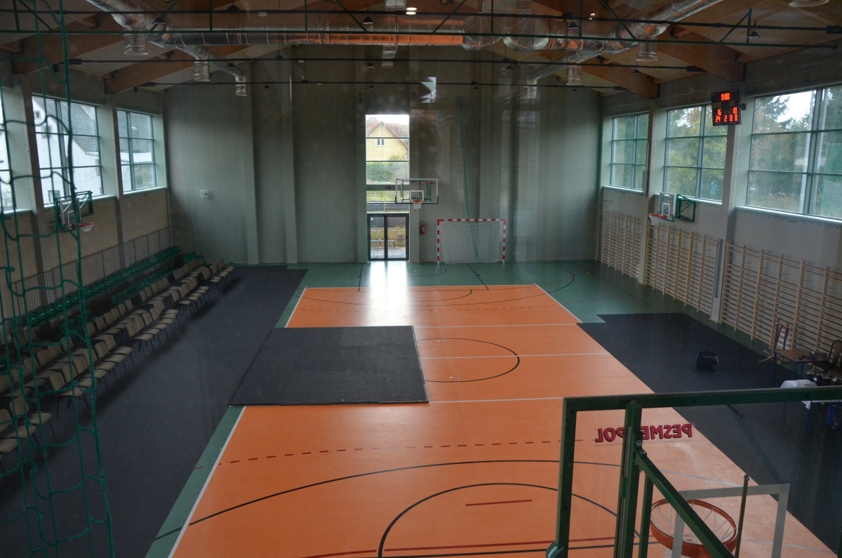 Na piętrze ulokowano drugą, mniejszą salę gimnastyczną o powierzchni 132 metrów kwadratowych, idealną do zajęć wychowania fizycznego, treningów i zajęć pozalekcyjnych. Komfort użytkowników zapewniają dodatkowe szatnie i łazienki. Obiekt w całości przystosowany jest do potrzeb osób z ograniczoną mobilnością. Komunikację między kondygnacjami ułatwia winda, a wszystkie przejścia i pomieszczenia mają odpowiednią szerokość i dostosowanie.