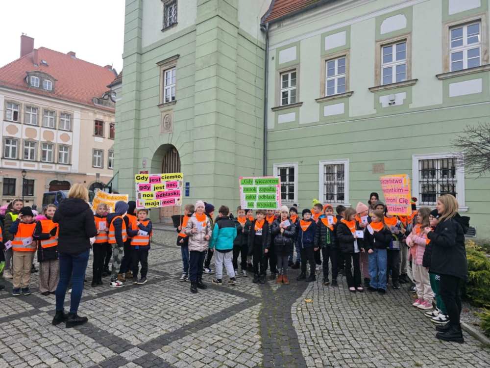 Dziś mieszkańcy Gryfowa Śląskiego mogli na własne oczy zobaczyć kolejną odsłonę akcji. Uczniowie „Dwójki” z transparentami w eskorcie policji przemierzali ulice skandując hasła namawiające do noszenia odblasków.