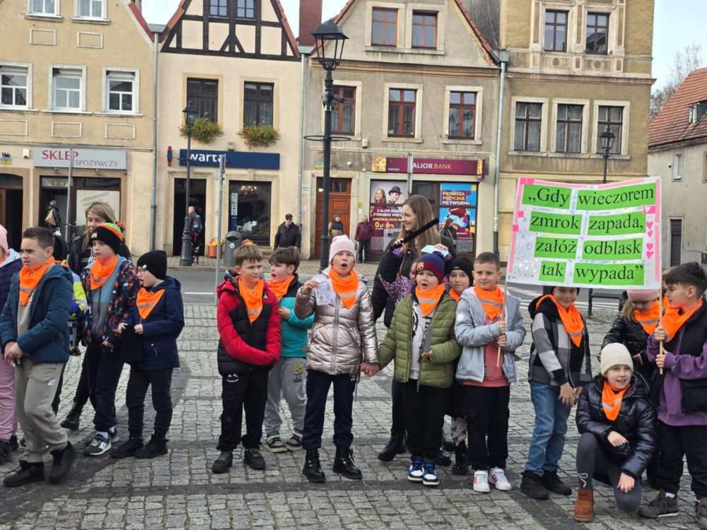 Dziś mieszkańcy Gryfowa Śląskiego mogli na własne oczy zobaczyć kolejną odsłonę akcji. Uczniowie „Dwójki” z transparentami w eskorcie policji przemierzali ulice skandując hasła namawiające do noszenia odblasków.