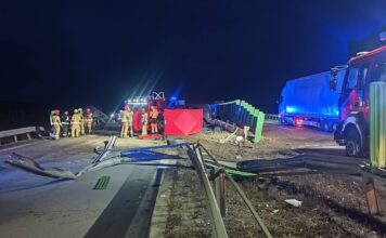 Ze wstępnych ustaleń wynika, że kierujący pojazdem ciężarowym zjechał na lewy pas ruchu, a następnie przebił bariery rozdzielające jezdnie i zderzył się z prawidłowo jadącym samochodem osobowym.