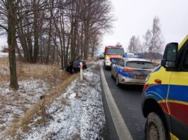 W sieci pojawiło się nagranie z wideorejestratora, na którym widać czarnego Volkswagena, który na łuku drogi jedzie prosto. Pojazd przecina przeciwległy pas ruchu, zjeżdża z drogi i z impetem wbija się w przydrożne drzewa.