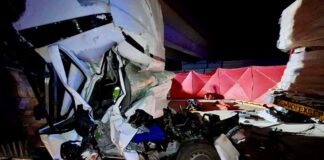Po tym jak samochód ciężarowy najechał na naczepę ciężarówki jego kabina została zmiażdżona. Niestety, w wyniku odniesionych obrażeń kierowca zmarł.