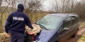 Kierujący samochodem osobowym nie zauważył leżącego na drodze kamienia, który był przysypany śniegiem. Po tym, jak na niego wjechał musiał wezwać straż pożarną i policję.