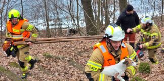 Nie wiadomo jak psy znalazły się na tafli zamarzniętego jeziora, same jednak nie potrafiły z niego zejść. Zziębnięte czekały na pomoc ludzi. Do akcji ruszyli strażacy.
