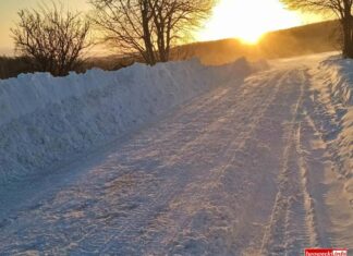 W niektórych miejscach warunki na drogach są bardzo trudne. Wiatr nawiewa śnieg tworząc zaspy utrudniające przejazd. Nawierzchnie są też miejscami śliskie.