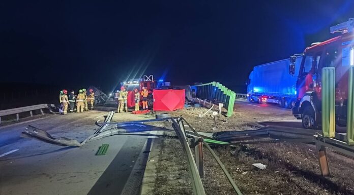 Ze wstępnych ustaleń wynika, że kierujący pojazdem ciężarowym zjechał na lewy pas ruchu, a następnie przebił bariery rozdzielające jezdnie i zderzył się z prawidłowo jadącym samochodem osobowym.