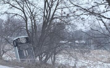Po tym jak kierujący Volkswagenem Polo stracił nad nim panowanie, samochód zjechał z drogi, wbił się w rów i oparł dachem o przydrożne drzewo.