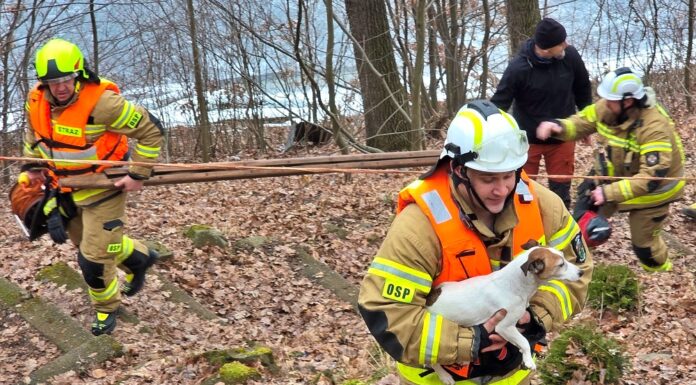 Nie wiadomo jak psy znalazły się na tafli zamarzniętego jeziora, same jednak nie potrafiły z niego zejść. Zziębnięte czekały na pomoc ludzi. Do akcji ruszyli strażacy.