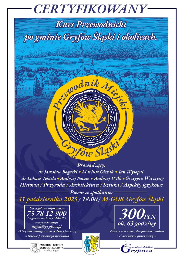- Organizatorem kursu jest Miejsko-Gminny Ośrodek Kultury w Gryfowie Śląskim, we współpracy z Gminą Gryfów Śląski i Towarzystwem Miłośników Gryfowa.