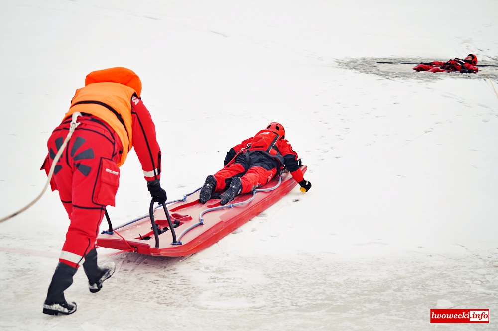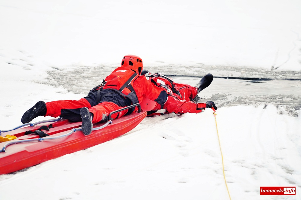 Panujące w ostatnich dniach mrozy sprawiły, że wiele zbiorników wodnych w regionie pokryło się lodem. Tafla, która z pozoru wygląda na stabilną i bezpieczną, w rzeczywistości stanowi poważne zagrożenie dla życia i zdrowia. Strażacy z powiatu lwóweckiego doskonale zdają sobie z tego sprawę, dlatego wykorzystali sprzyjające warunki pogodowe do przeprowadzenia specjalistycznych ćwiczeń lodowych. Przez trzy dni szkolić się będą na zbiorniku wodnym w Rakowicach Małych. Ćwiczenia mają na celu doskonalenie umiejętności udzielania pomocy osobom, pod którymi załamał się lód.