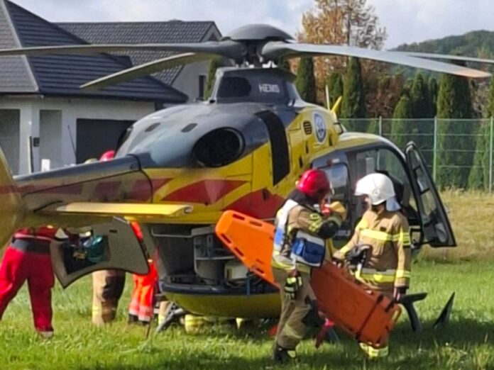 Na miejsce natychmiast zadysponowano zastępy strażaków z JRG PSP w Lwówku Śląskim oraz OSP Płóczki Górne, a także zespół ratownictwa medycznego i patrole lwóweckiej policji. Po dotarciu na miejsce do poszkodowanego zdecydowano o konieczność pilnego przetransportowania mężczyzny szpitala i wezwano śmigłowiec Lotniczego Pogotowia Ratunkowego, który lądował na boisku w Płóczkach Dolnych.