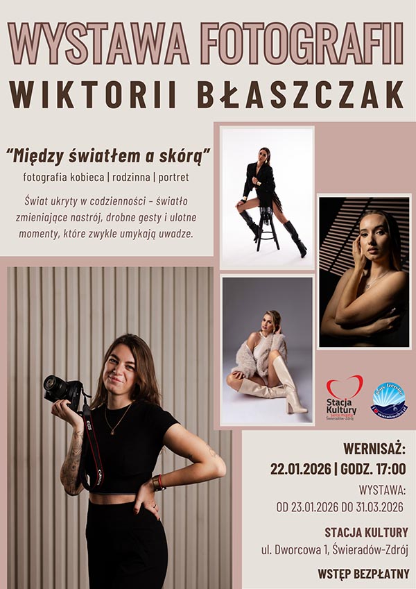 Podczas wernisażu Wiktoria Błaszczak opowie o swojej pracy, kulisach sesji oraz o tym, jak wygląda współpraca z fotografem – od pierwszego kontaktu po gotowe zdjęcia. Wydarzenie szczególnie polecane osobom planującym sesję kobiecą, rodzinną lub portretową.