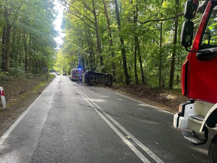 – Po przybyciu na miejsce ustalono, że auto osobowe typu bus dachowało i leży na boku blokując częściowo jeden pas ruchu. Autem podróżowały dwie osoby, które opuściły pojazd o własnych siłach. – wskazuje mł. asp. Marcin Głąb z PSP w Złotoryi.
