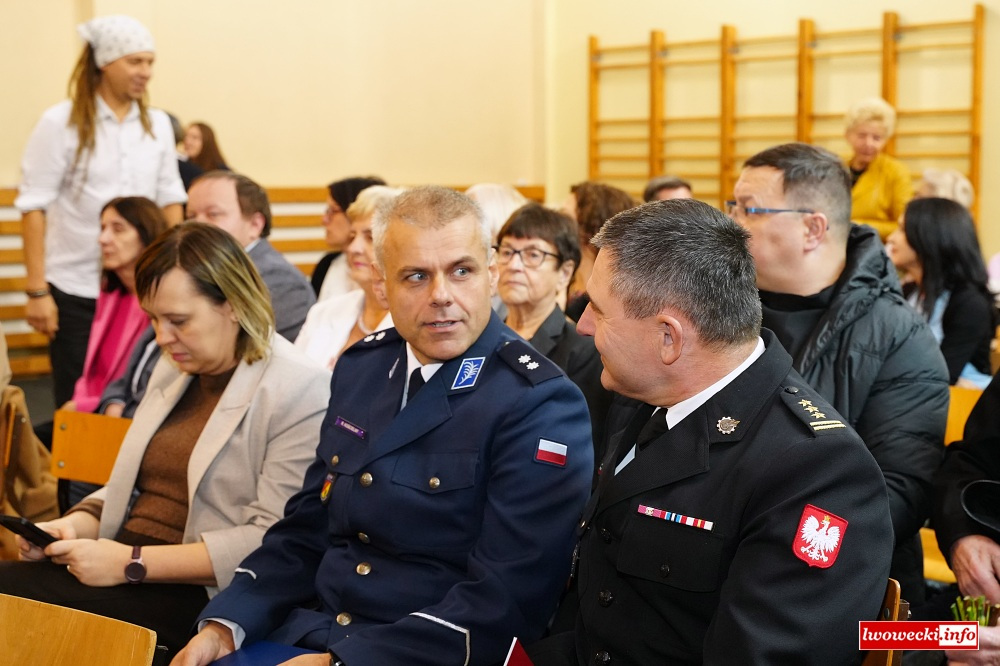 Uroczystość swoją obecnością zaszczycili: st. bryg. Mariusz Mróz Komendant Powiatowy PSP w Lwówku Śląskim, podkom. Rafał Kościelny Zastępca Naczelnika Wydziału Prewencji KPP w Lwówku Śląskim, Magdalena Strzelecka reprezentująca Starostę Lwóweckiego, Magdalena Szymanowicz-Bogdan Dyrektor Lwóweckiej Biblioteki Publicznej, Marcin Siemiątkowski Przewodniczący Rady Rodziców, Jacek Żojdzik Przewodniczący Komisji Oświaty Rady Powiatu Lwóweckiego, Paweł Piecyk Dyrektor PORE w Lwówku Śląskim, Teresa Wahal reprezentująca Związek Nauczycielstwa Polskiego i Jarosław Trościanko Przewodniczący Związku Sybiraków. Najważniejsi tego dnia byli nauczyciele, tak Ci obecnie prowadzący zajęcia z młodzieżą, jak i emerytowani oraz rodzice uczniów.