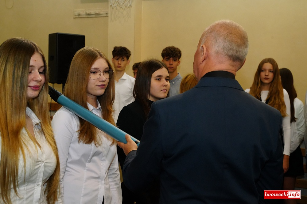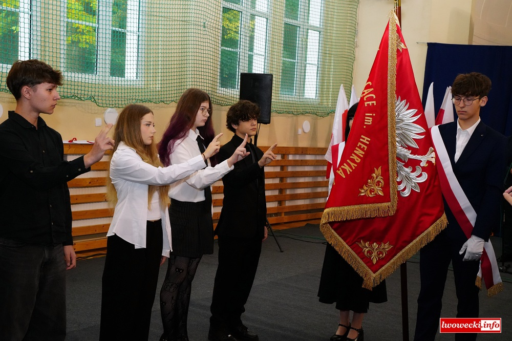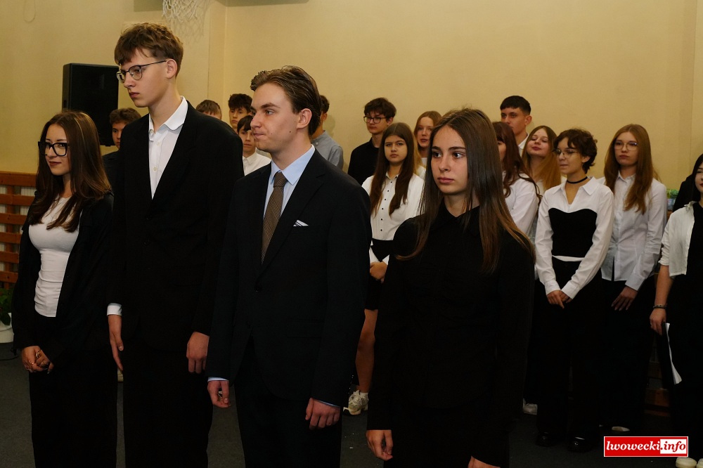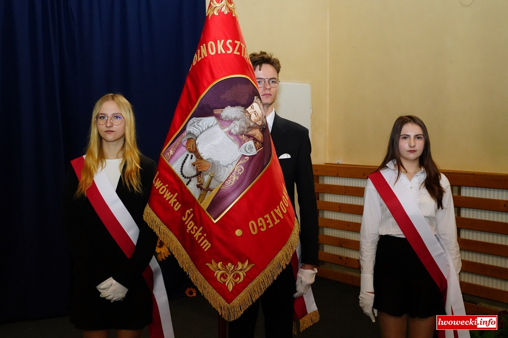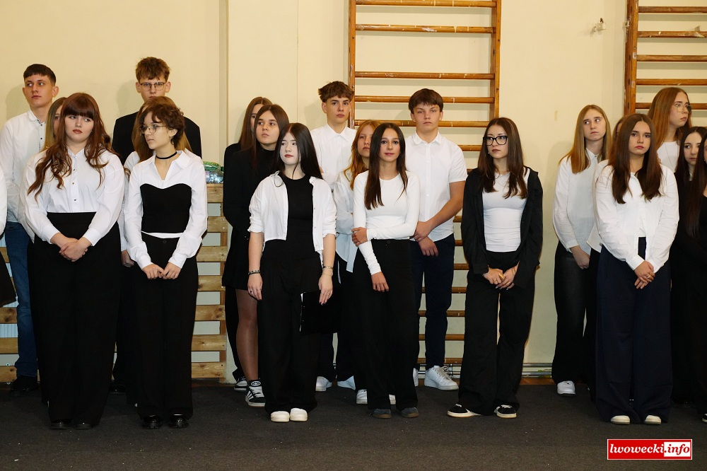 Wtorkowa uroczystość w ZSOiZ w Lwówku Śląskim była także okazją do przyjęcia do społeczności szkoły uczniów klas pierwszych, którzy złożyli uroczyste ślubowanie. A na zakończenie apelu młodzież zaprezentowała krótki program artystyczny.