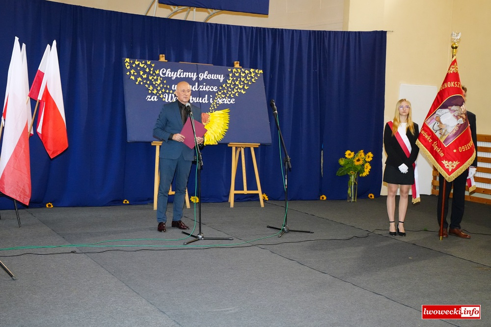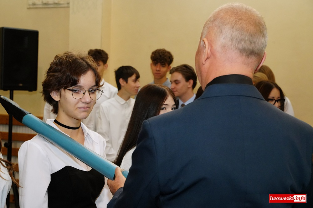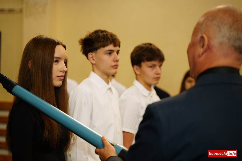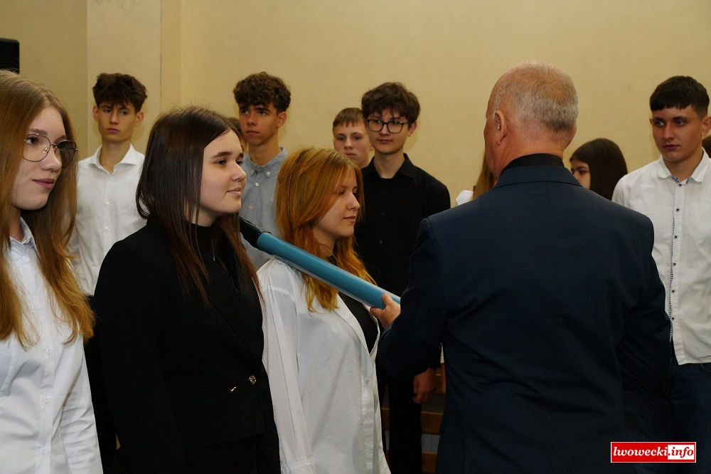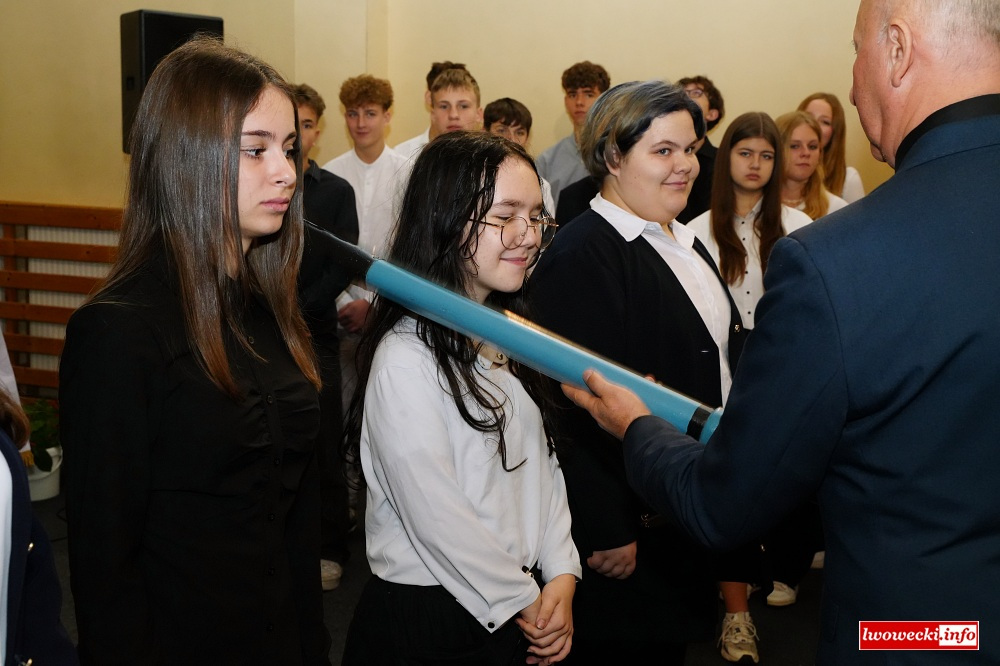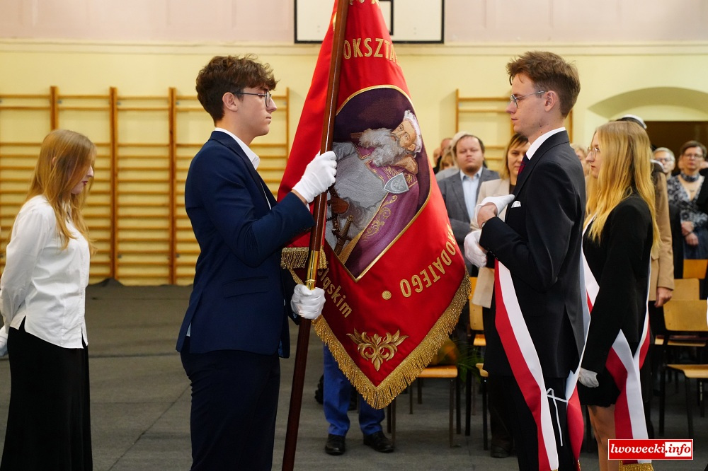 Wtorkowa uroczystość w ZSOiZ w Lwówku Śląskim była także okazją do przyjęcia do społeczności szkoły uczniów klas pierwszych, którzy złożyli uroczyste ślubowanie. A na zakończenie apelu młodzież zaprezentowała krótki program artystyczny.