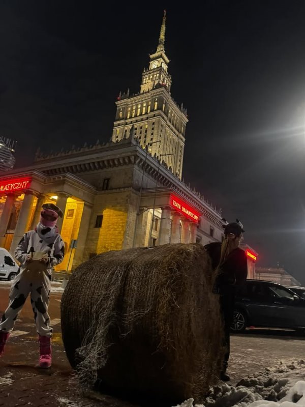 W proteście w Warszawie udział wzięli także nasi rolnicy. Do stolicy pojechali przedstawiciele z Janic i Starej Kamienicy. Zabrali ze sobą przebrania, banery i … zapakowani na samochód balota siana, z którym udało im się dotrzeć aż pod sam Pałac Kultury i Nauki. W ramach happeningu zorganizowali tam akcję „toczenia balota”.