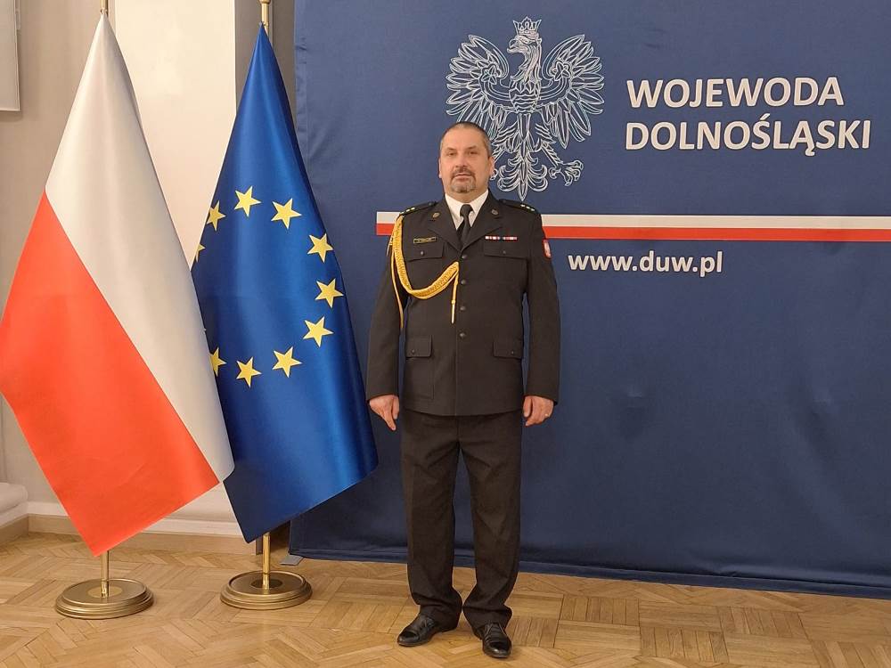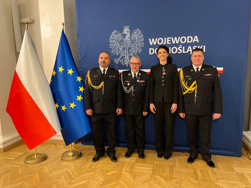 W uroczystości uczestniczyli nadbryg. Marek Hajduk Dolnośląski Komendant Wojewódzki PSP oraz Anna Żabska Wojewoda Dolnośląski.