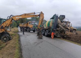 Wczoraj, na wąskiej drodze do rowu wpadł przewożący dzieci autobus. Dziś w powiecie lwóweckim, betoniarka zsunęła się do rowu. Policjanci apelują o ostrożność.