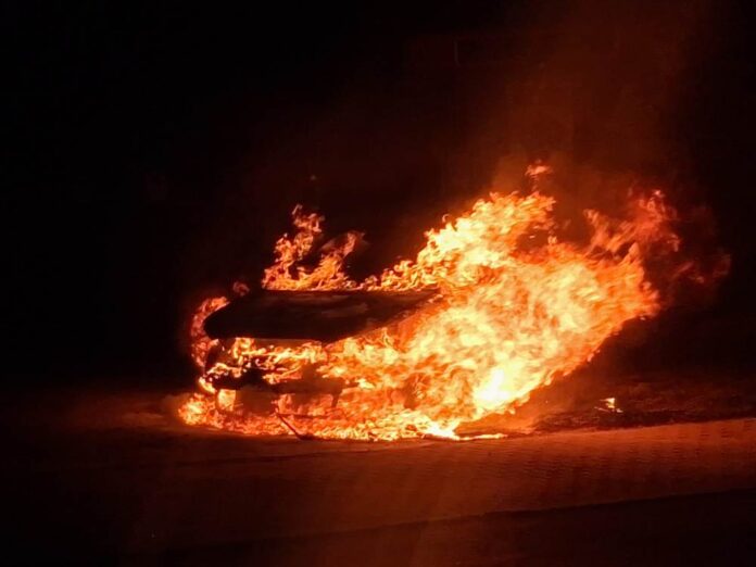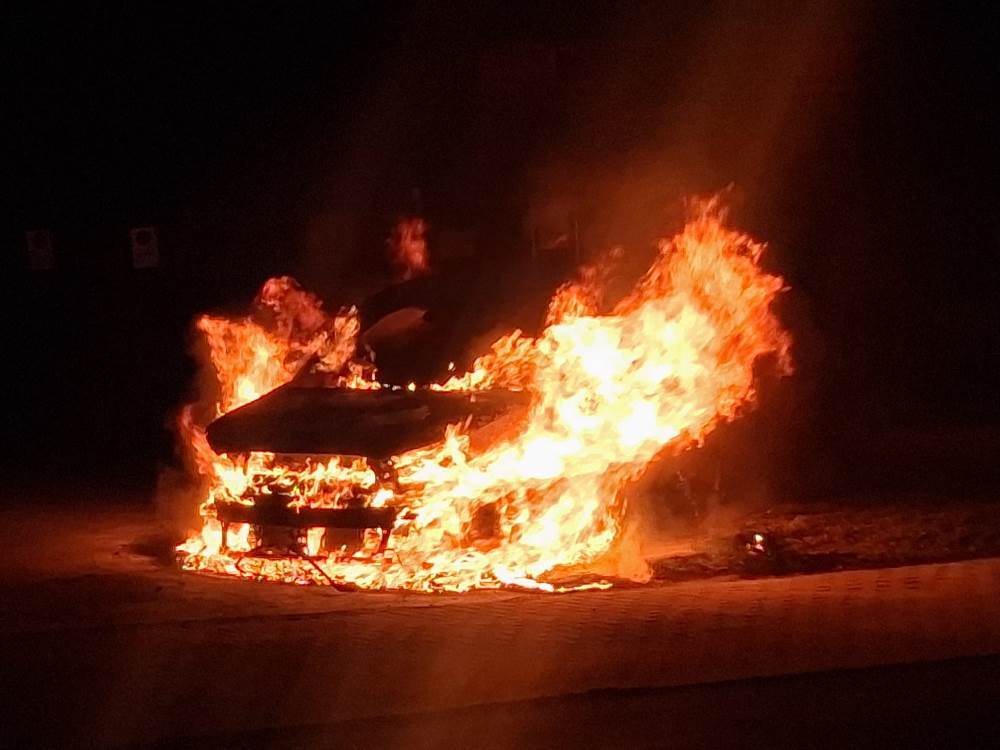 Niestety, mimo wysiłków strażaków auto spłonęło niemal doszczętnie.
