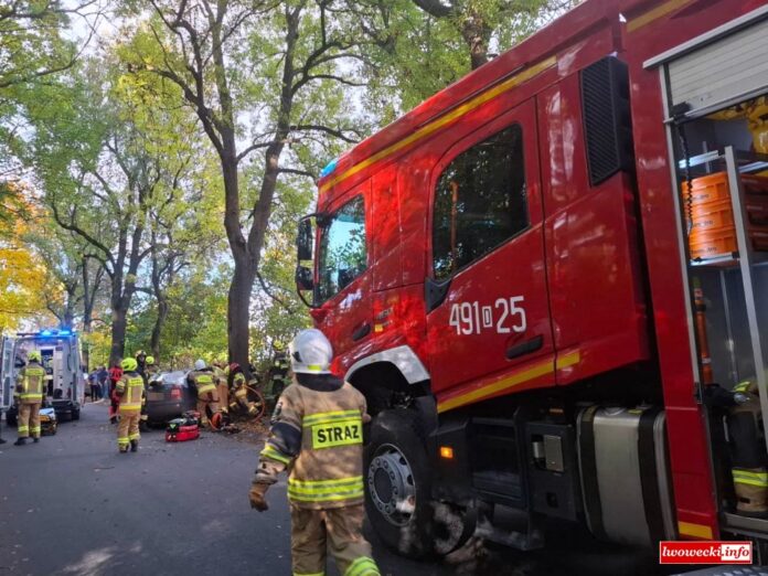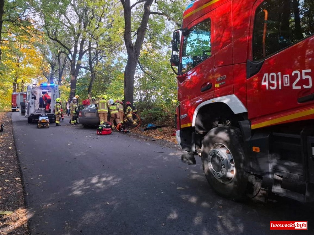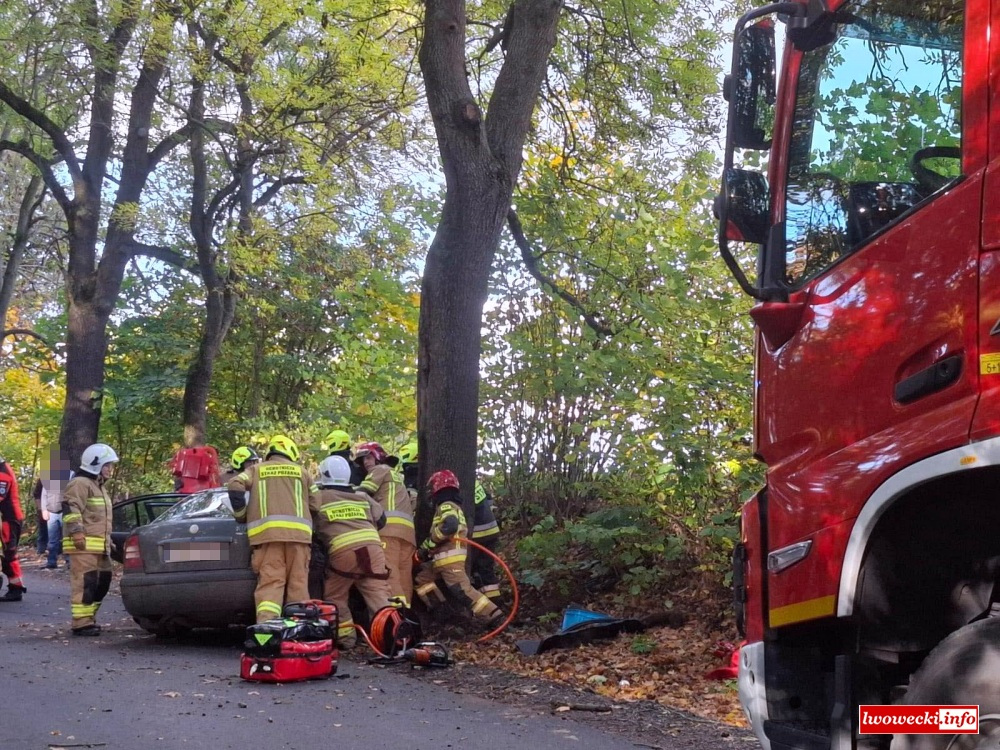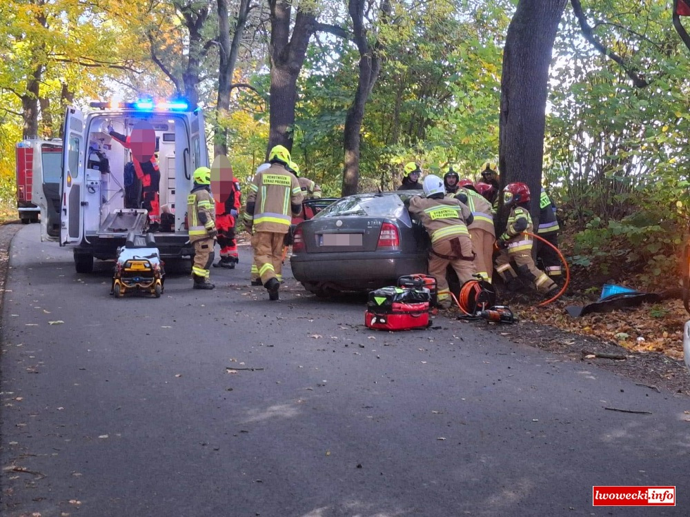 Z wstępnych informacji z miejsca zdarzenia wynika, iż kierujący Skodą stracił panowanie nad pojazdem i auto uderzyło w drzewo. W wyniku zdarzenia poszkodowany został pasażer samochodu, którego strażacy musieli wydobyć z pojazdu.