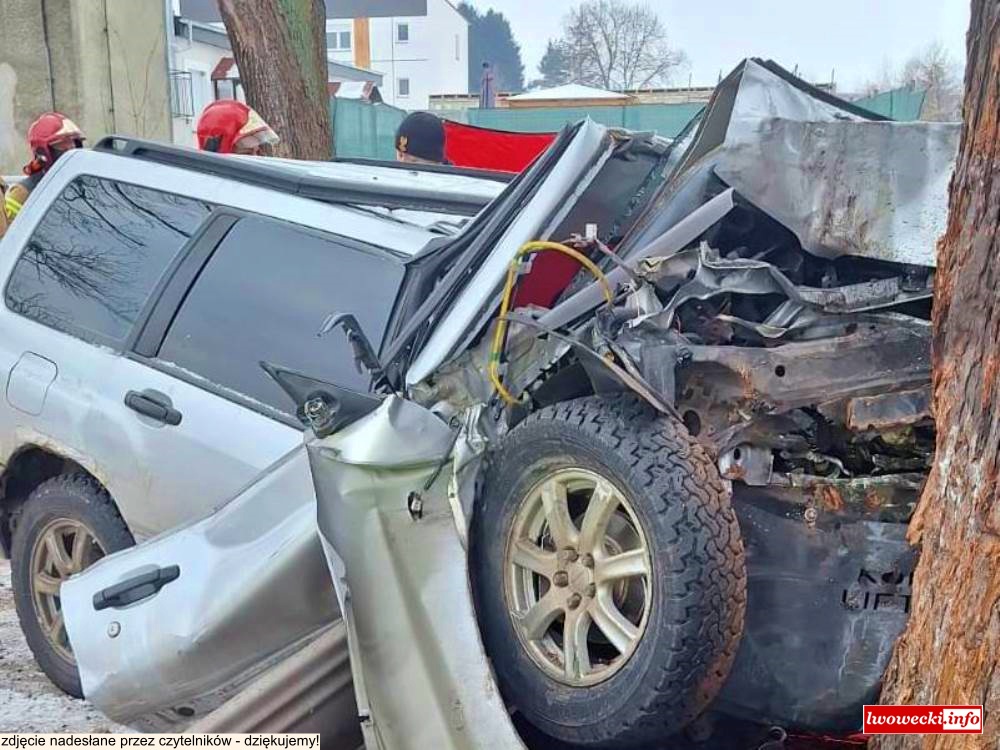 Na miejscu okazało się, iż z nieustalonych na chwilę obecną przyczyn, kierujący samochodem marki Subaru, 46- mieszkaniec powiatu lwóweckiego stracił panowanie nad prowadzonym autem. Auto zjechało z drogi i uderzyło w drzewo.
