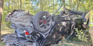 Po tym, jak kierujący samochodem osobowym stracił nad nim panowanie, auto zjechało z drogi, a następnie dachując wbiło się między drzewa.