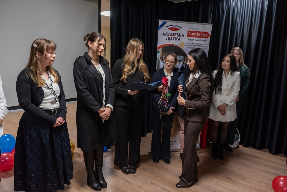 Justyna Lisowska – Dyrektor szkół językowych Akademia Języka mających swoje siedziby w 4 lokalizacjach: Gryfów Śląski, Mirsk, Lubań, Jelenia Góra, skierowała gorące gratulacje do wszystkich uczniów oraz ich rodziców, podkreślając, że osiągnięte wyniki są wspólnym sukcesem – efektem wsparcia rodziców oraz zaangażowania nauczycieli.