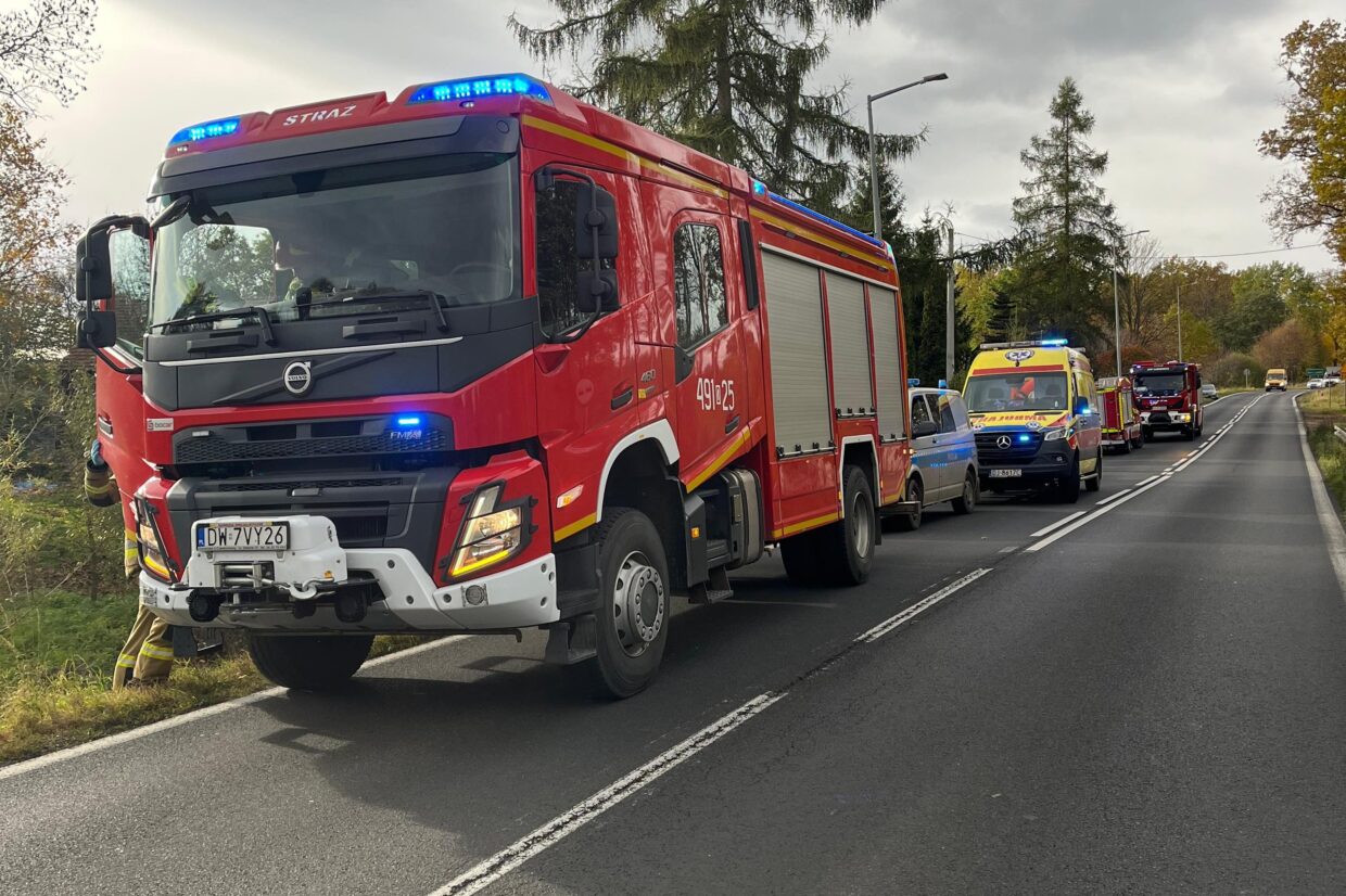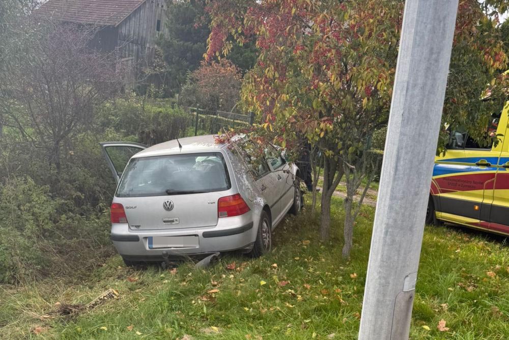 Po tym, jak samochód zjechał z drogi i z impetem uderzył w drewno, świadkowie na miejsce wezwali straż pożarną, policję i pogotowie ratunkowe. Kierowca Golfa trafił do szpitala.