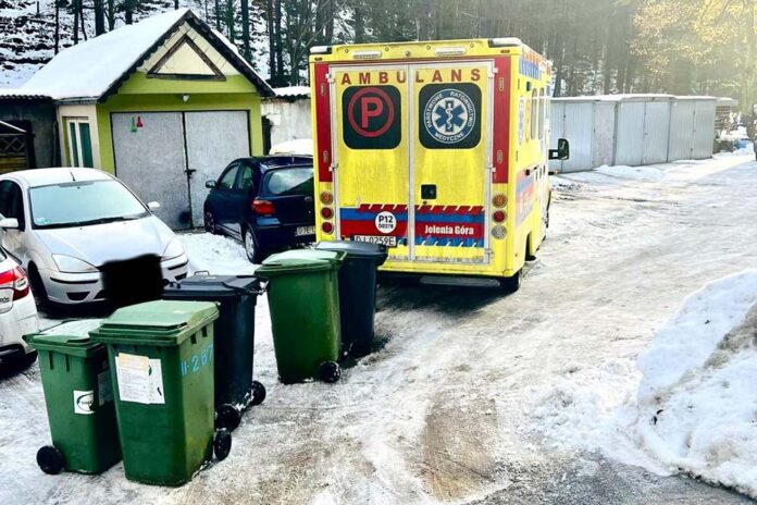 – Nasz ZRM Jelenia Góra Ogińskiego udzielał pomocy nieprzytomnej kobiecie w Piechowicach. Jak widzicie na zdjęciu, podczas wykonywania medycznych czynności ratunkowych, nasz ambulans został zablokowany przez kogoś, kto ustawił kubły na śmieci zaraz za zaparkowaną karetką – być w może jako rodzaj kary za zaparkowanie w „niewłaściwym” miejscu. – wskazuje Piotr bednarek rzecznik prasowy Pogotowia Ratunkowego w Jeleniej Górze.