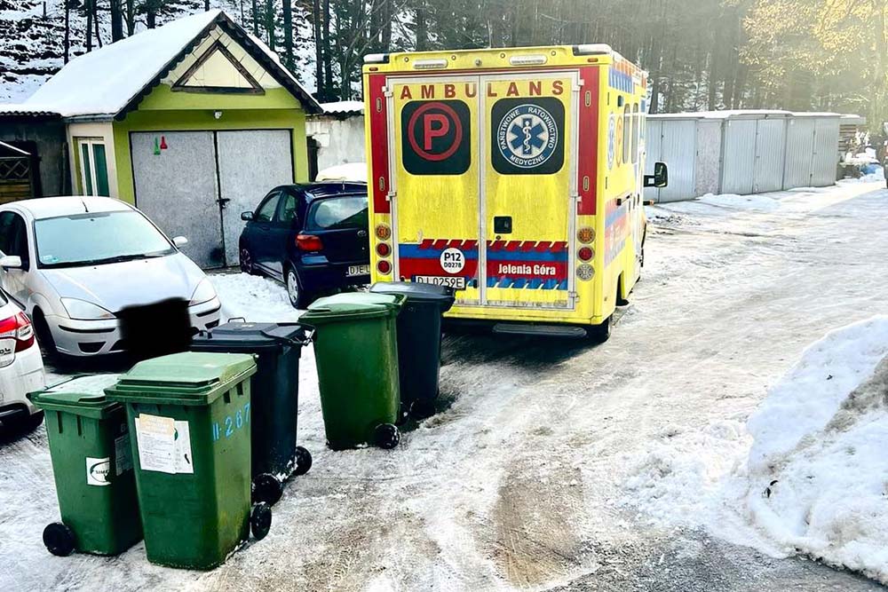 – Po wykonaniu czynności na miejscu zdarzenia w Piechowicach, nasi Ratownicy Medyczni zostali od razu zadysponowani aż do miejscowości Mirsk, gdzie pomocy wymagał kolejny pacjent. Niestety, musieli stracić czas na odstawianiu kubłów na śmieci, by wyjechać na drogę i ruszyć z pomocą. – dodaje rzecznik pogotowia.