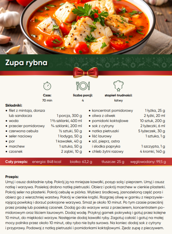 Święta Bożego Narodzenia to czas radości, spokoju i rodzinnego ciepła. Zgodnie z polską tradycją na wigilijnym stole nie może zabraknąć tradycyjnych potraw, w tym także ryb, które zajmują szczególne miejsce w świątecznym menu. Z myślą o tych, którzy chcą dochować tradycji, ale jednocześnie uważają na swoją dietę NFZ przygotował e-book “Ryby na świątecznym stole”.