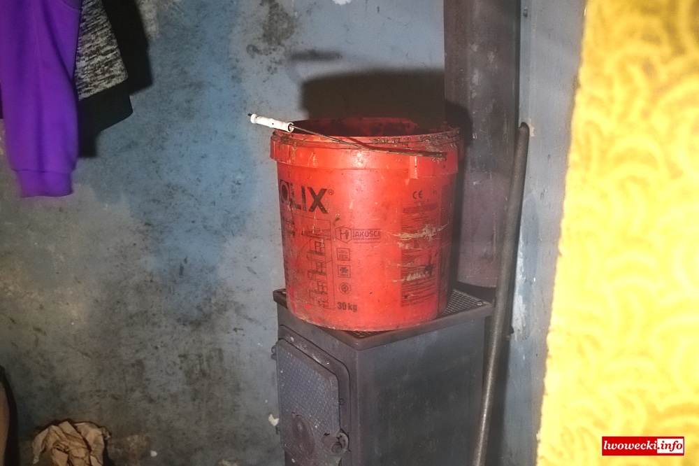 Malutkie pomieszczenie około 11 m2, z zakratowanym małym okienkiem zabitym deskami, z brakiem dobrej wentylacji i zawilgoconymi ścianami jest w katastrofalnym stanie. Ogrzewane jest piecem typu „koza”, przy którym składowane jest drewno na opał, a obok znajduje się wersalka i szafki. Czy odległość od pieca do materiałów łatwopalnych jest wystarczająca? Jak dotąd jeszcze nie doszło do pożaru, aczkolwiek aż trudno w to uwierzyć!